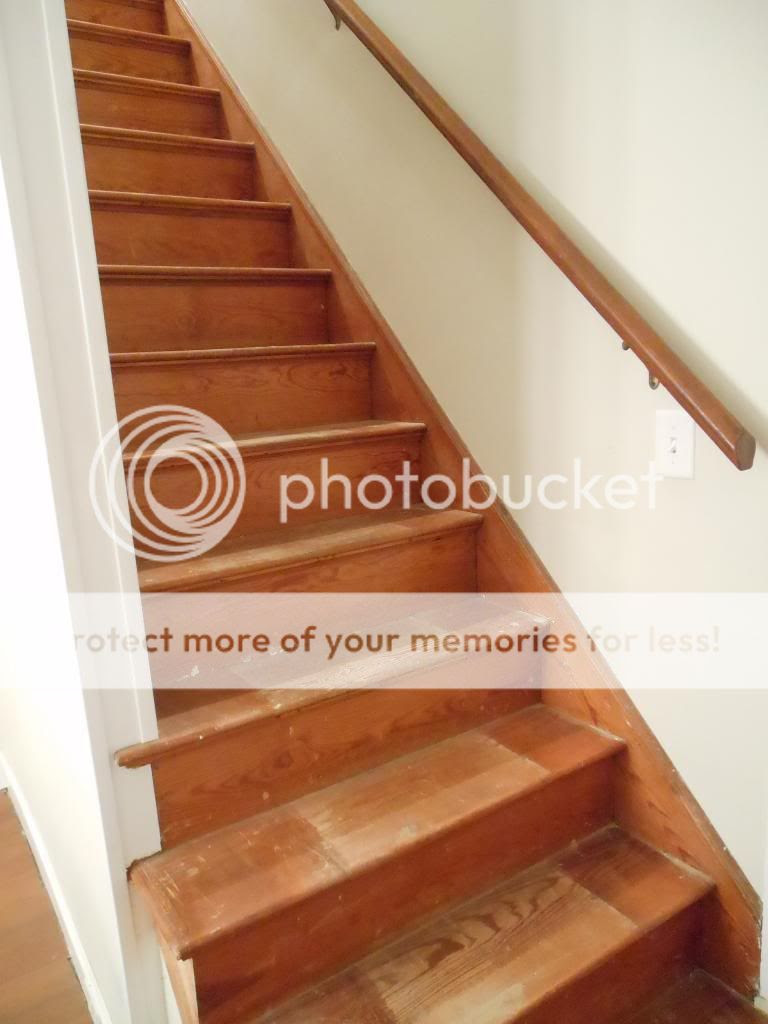 The stairs were carpeted as well. When we bought the house, for some reason somebody had pulled the carpet off of four or five of the steps, but left it on the rest. So for the last 2 1/2 years we had partially carpeted, partially hardwood stairs. Not ideal. Plus the staircase is the first thing you see when you open the front door. It looks sooo much better now!